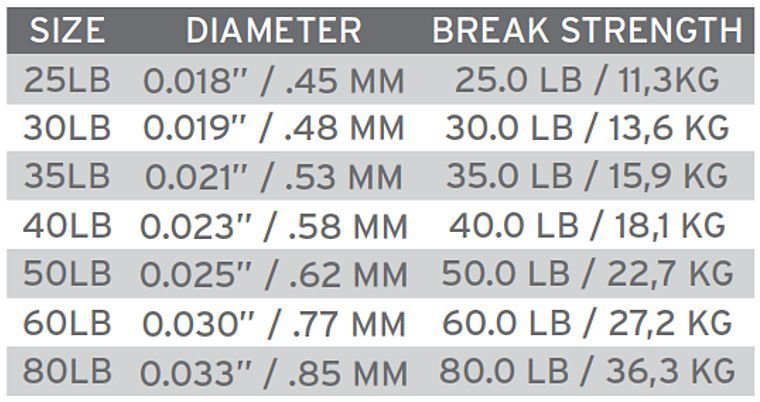 - Długość: 30m każdy rozmiar od: 25lb – 80lb.