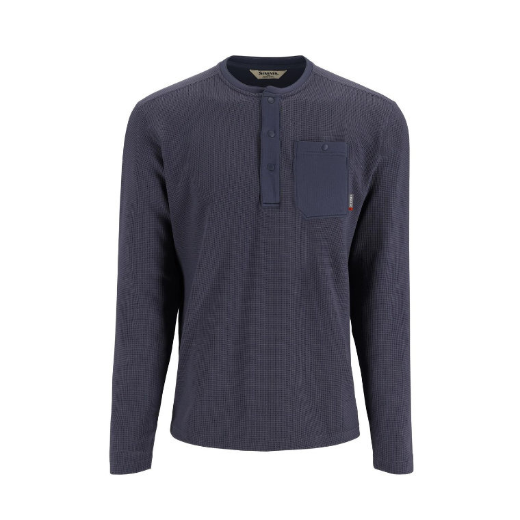 Simms Highline Henley wykonana z waflowej dzianiny, zapewniająca natychmiastowy komfort i ciepło przylegające do skóry, które chroni przed zimnem. To najlepszy wybór na pierwszą warstwę.
