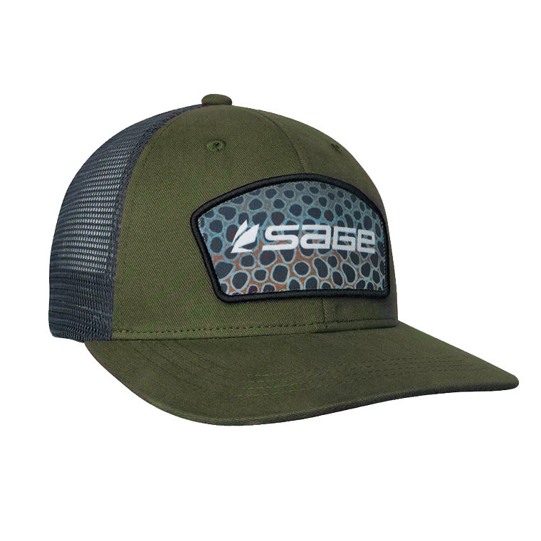 Czapka typu trucker z siateczki, która zapewnia oddychającą ochronę na wodzie. Z przodu logo Sage na naszywce z motywem rybiej łuski autorstwa artystki Casey Underwood.