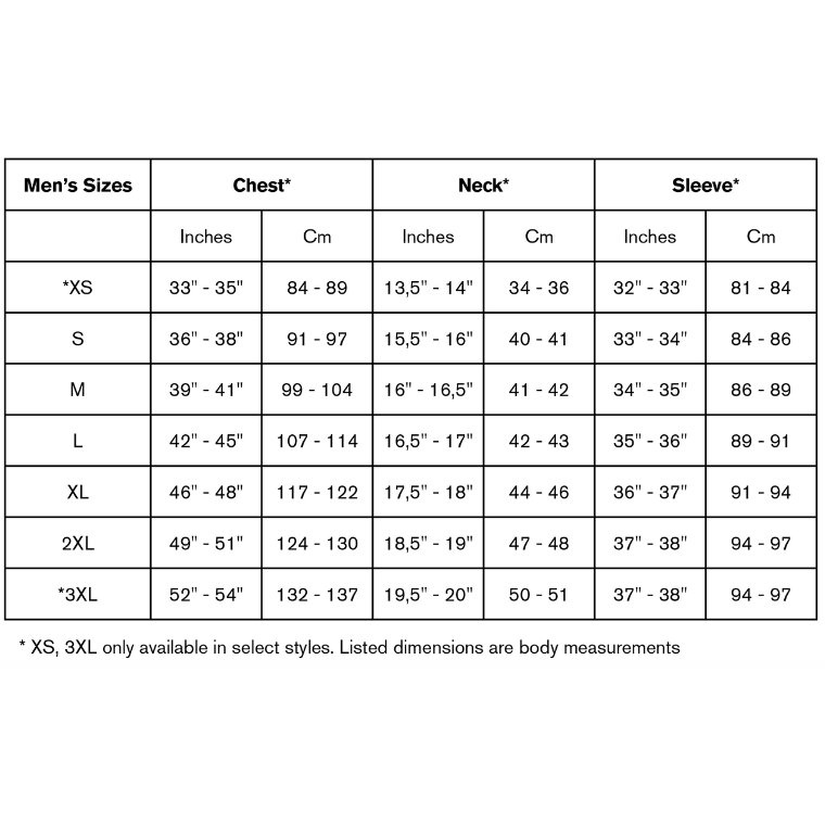 RozmiarKlatka piersiowa (cm)*Szyja (cm)*Rękaw (cm)*