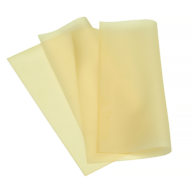 Rozciągliwy i elastyczny, lekko przeźroczysty w naturalnym kremowo‑żółtym odcieniu.