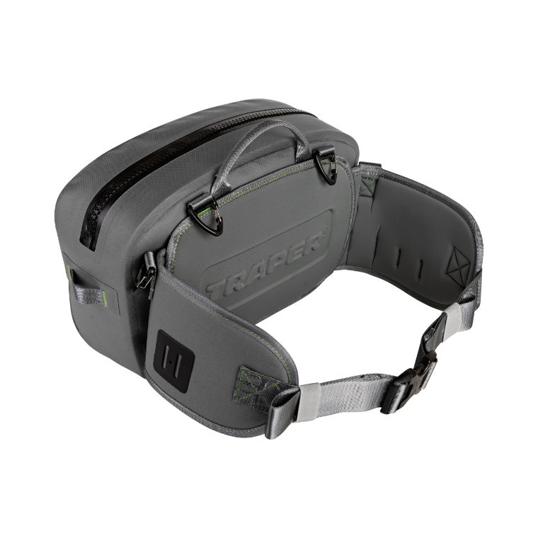 Hippack Extreme jest wykonany z całkowicie wodoodpornego materiału 840D, dwustronnie laminowanego w technologii TPU. Do zamknięcia wykorzystano wodoszczelny japoński zamek YKK. We wnętrzu znajduje się dwukomorowa kieszeń zamykana na zamki. Na froncie umieszczono kieszeń na akcesoria zamykaną bryzgoszczelnym zamkiem YKK. Do przenoszenia służy wygodny pas naramienny i stabilizujący pas biodrowy. Na pasach umieszczone są: karabińczyk do podbieraka, szlufki, wysuwany zaczep na szczypce, gumy i rzep na patkę. Tył torby został usztywniony tłoczonym, miękkim panelem, nad którym umieszczono rączkę do przenoszenia. Z tyłu znajdziemy dwa dodatkowe karabińczyki służące do przypięcia Hippacka do naszych plecaków Extreme. Wariant taki stosujemy po wcześniejszym wypięciu pasa biodrowego, który do panela przytwierdzony jest na rzepy.