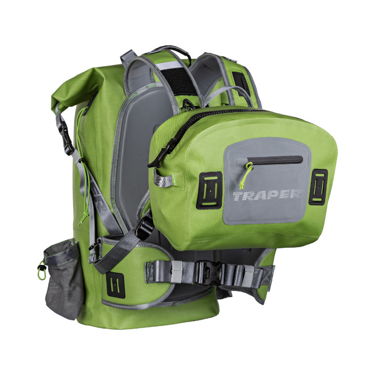 Hippack Extreme jest wykonany z całkowicie wodoodpornego materiału 840D, dwustronnie laminowanego w technologii TPU. Do zamknięcia wykorzystano wodoszczelny japoński zamek YKK. We wnętrzu znajduje się dwukomorowa kieszeń zamykana na zamki. Na froncie umieszczono kieszeń na akcesoria zamykaną bryzgoszczelnym zamkiem YKK. Do przenoszenia służy wygodny pas naramienny i stabilizujący pas biodrowy. Na pasach umieszczone są: karabińczyk do podbieraka, szlufki, wysuwany zaczep na szczypce, gumy i rzep na patkę. Tył torby został usztywniony tłoczonym, miękkim panelem, nad którym umieszczono rączkę do przenoszenia. Z tyłu znajdziemy dwa dodatkowe karabińczyki służące do przypięcia Hippacka do naszych plecaków Extreme. Wariant taki stosujemy po wcześniejszym wypięciu pasa biodrowego, który do panela przytwierdzony jest na rzepy.