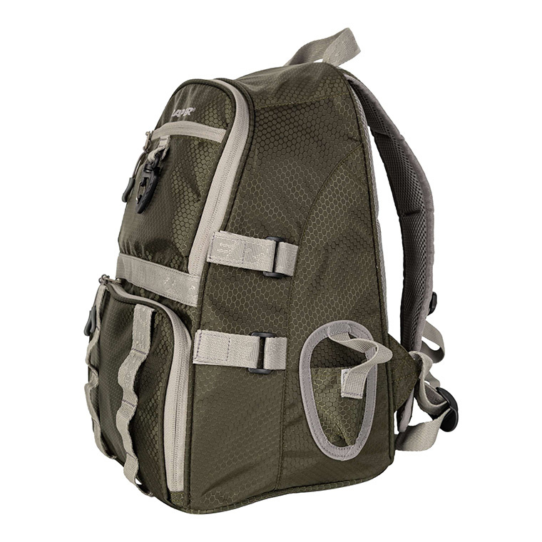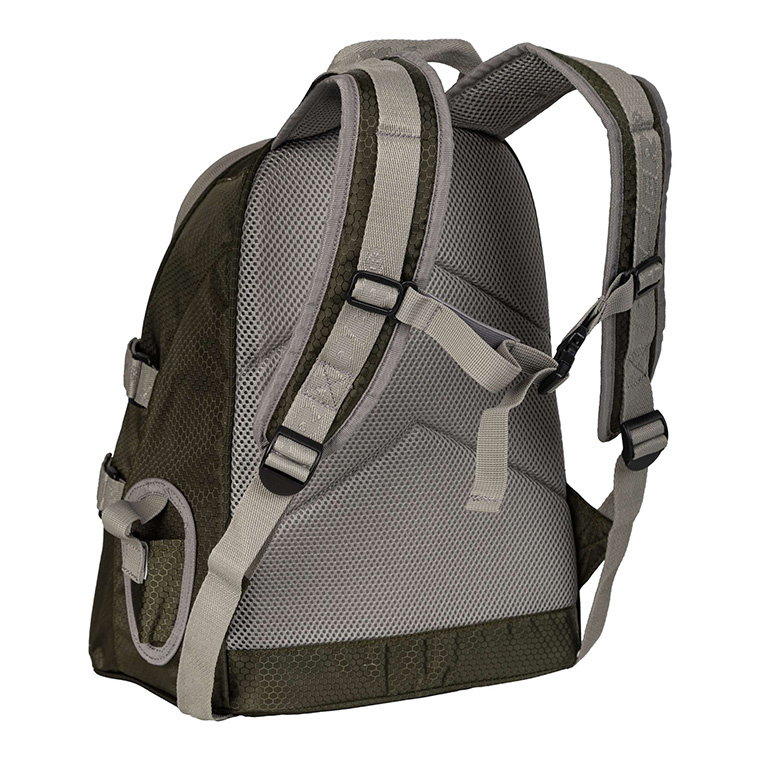 Plecak Medium Active to kompaktowy, a jednocześnie wyjątkowo pojemny model, zaprojektowany z myślą o aktywnych wędkarzach. Wykonany z trwałego materiału o strukturze plastra miodu, odpornego na przetarcia i działanie czynników zewnętrznych, gwarantuje niezawodność każdych warunkach terenowych. Posiada pojemną komorę główną, którą możemy podzielić na dwie części, za pomocą przegrody przytwierdzanej na rzep. Górna, funkcjonalna kieszeń z przodu umożliwia dostęp do komory plecaka. Dodatkowo na klapie umieszczono małą kieszonkę zamykaną na zamek z zaczepem do podbieraka. Przez dolną, zasuwaną kieszeń z parcianymi pasami sięgniemy do dolnej komory wewnętrznej. Boczne kieszenie z elastycznej siatki idealnie nadają się na butelki lub inne, podręczne przedmioty. Ergonomicznie ukształtowane szelki i tylna część plecaka zostały wyścielone miękką siatką, zapewniającą dobrą wentylację. Pas piersiowy oraz paski stabilizujące, pomogą równomiernie rozłożyć ciężar i zwiększyć wygodę noszenia.