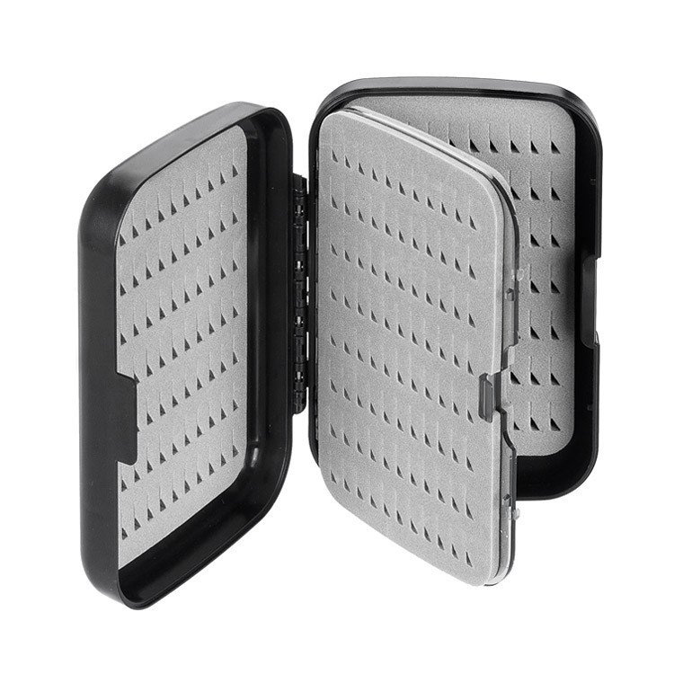 Dzięki specjalnej konstrukcji w pudełkach BG Fly Box można przechowywać dowolny rodzaj much, bez obawy o ich uszkodzenie lub zgniecenie. Innowacyjny system nacięć  umożliwia przechowywanie muszek wykonanych na haczykach zadziorowych i bez zadziorowych bez możliwości uszkodzenia pianki. Rozkurczowe właściwości pianki  Easy Grip gwarantują pewne przytrzymanie najdelikatniejszych much w momencie wstrząsów lub upadku pudełka na ziemię.